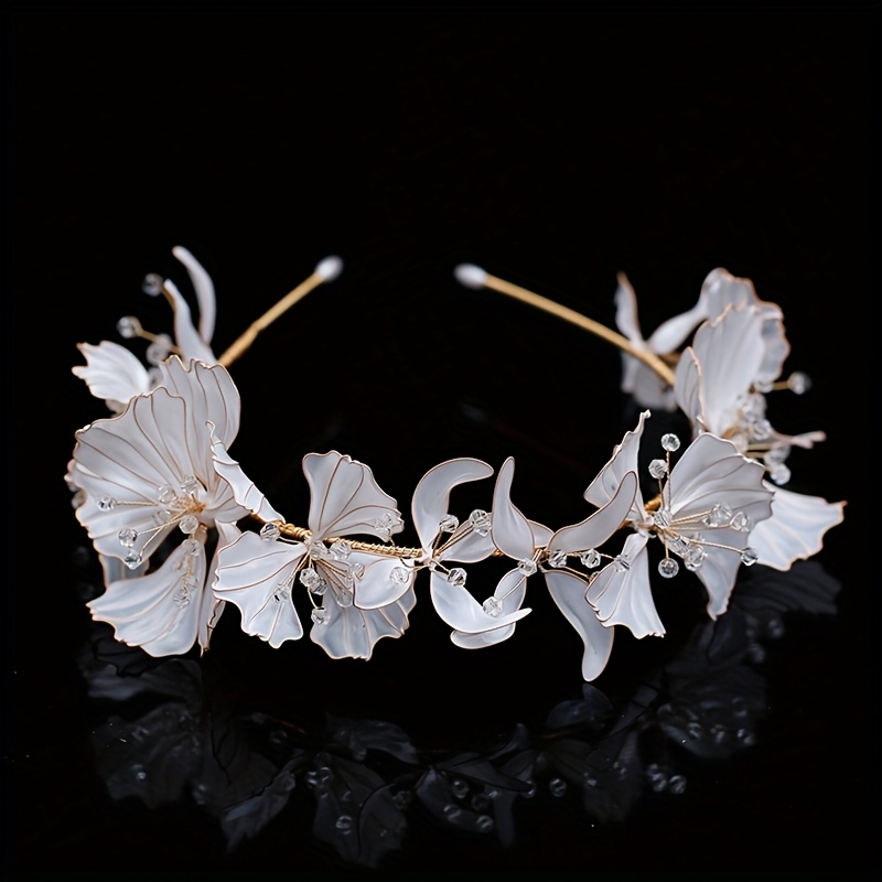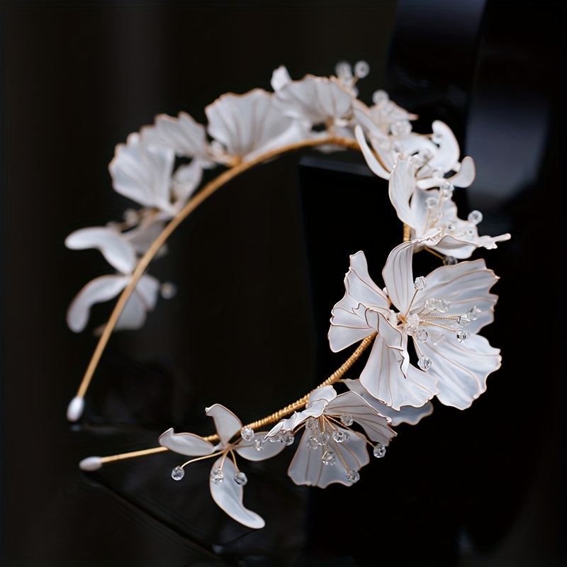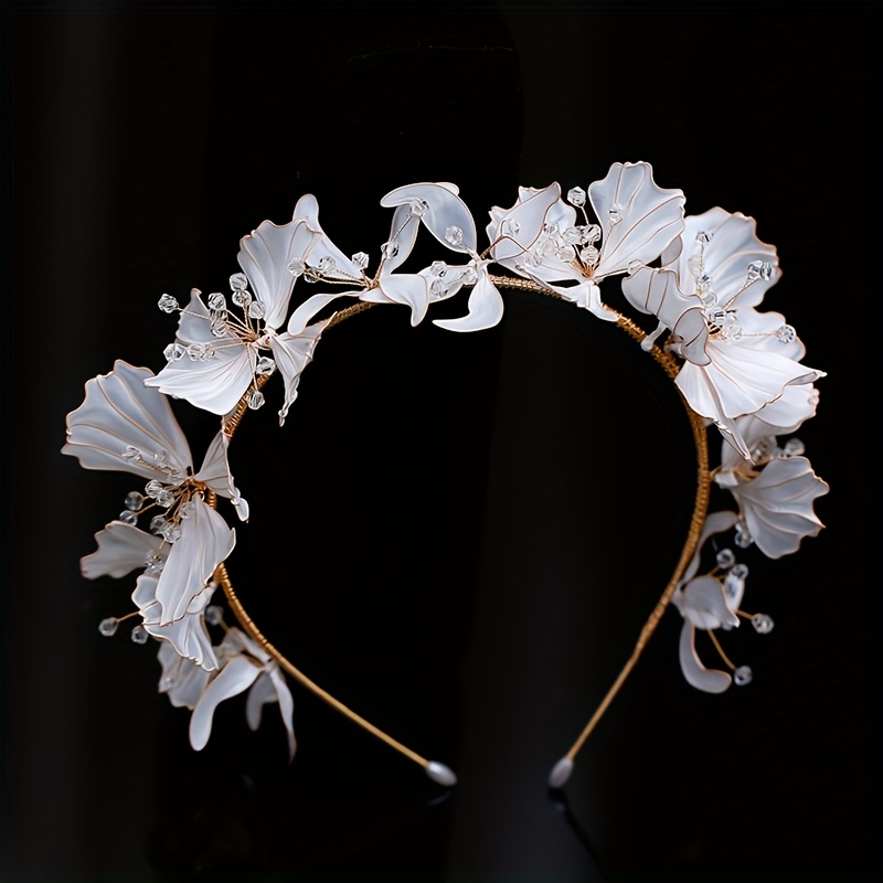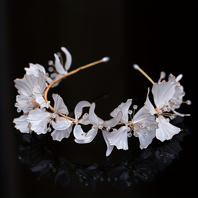 Serre Tête Mariage, Fleurs Blanches Finition Cristaux, Style Bohème : Confort et Style