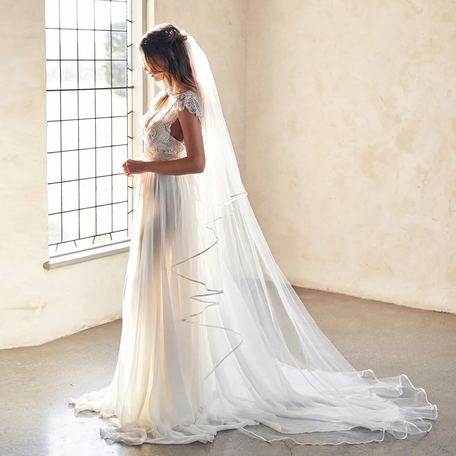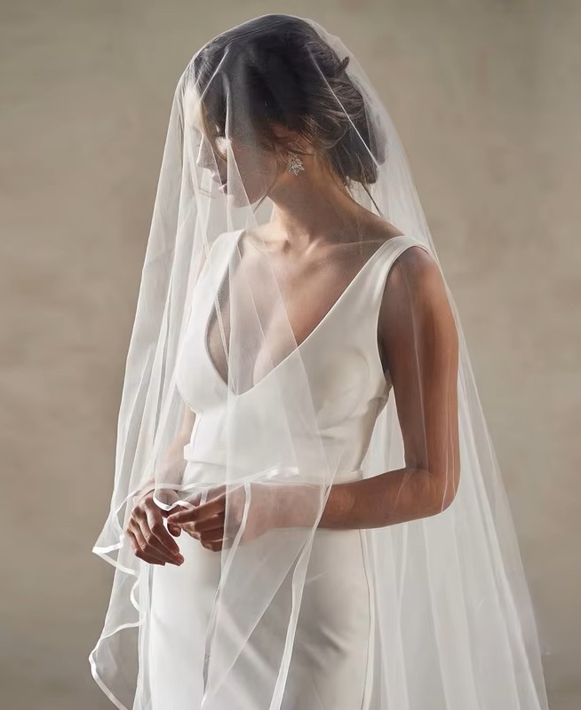 Voile de mariée long bord ruban satin, un choix parfait pour toutes les tenues